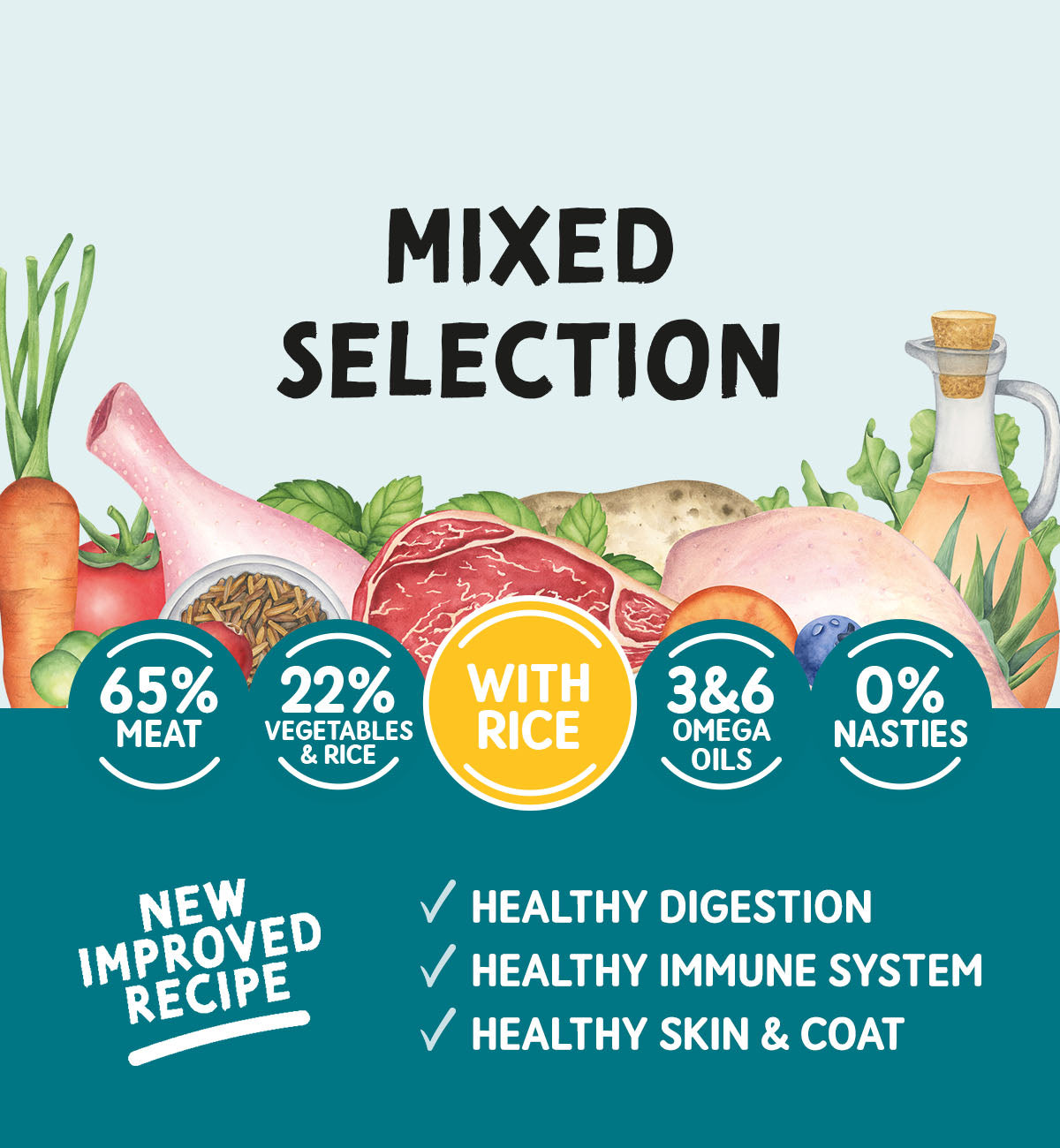 Adult Dog Mixed Selection with Rice Variety Pack - Wet Dog Food | 400g Trays x 12