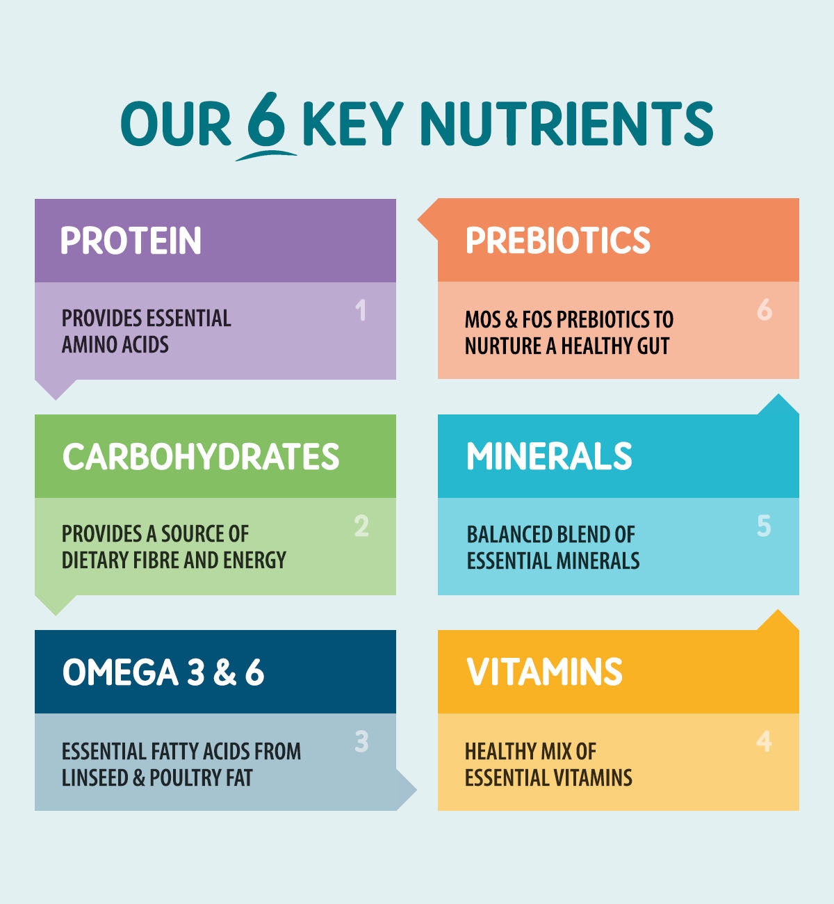 Protein 60% Meat content from protein sources such as chicken, duck and turkey